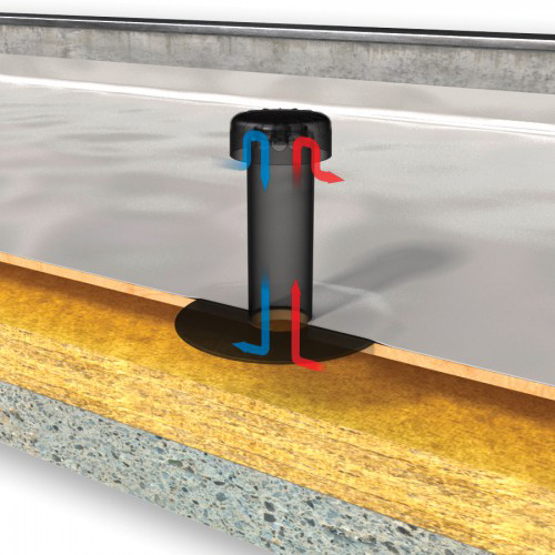 Außerdem kann der Flavent® Be- und Entlüfter als Entspannungslüfter zur Ableitung von Feuchtigkeit, die in der Flachdachkonstruktion eingeschlossen ist, eingesetzt werden.