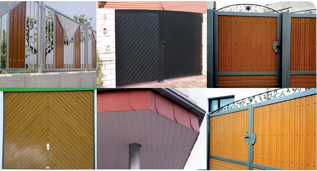 KömaPan eignet sich im Bausektor hervorragend für den Einsatz in Hoftorfüllungen, Garagentorfüllungen, Haustürfüllungen, Balkonfüllungen sowie für Fassadenverkleidungen, Attikaverkleidungen und Giebelverkleidungen.