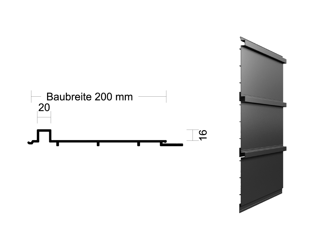 Alle fünf Paneeltypen können frei miteinander kombiniert werden. Die Befestigung erfolgt verdeckt. Aufgrund der hohen Wanddicke ist das Rechteckpaneel U 20/20 ein sehr widerstandsfähiges Paneel. An der Fassade lassen sich mit dem Rechteckpaneel U 20/20 abwechslungsreiche Schattenwirkungen gestalten: Eine Verdichtung (enges Raster) lässt die Fassade dunkler, eine Streckung (weites Raster) lässt sie heller erscheinen.