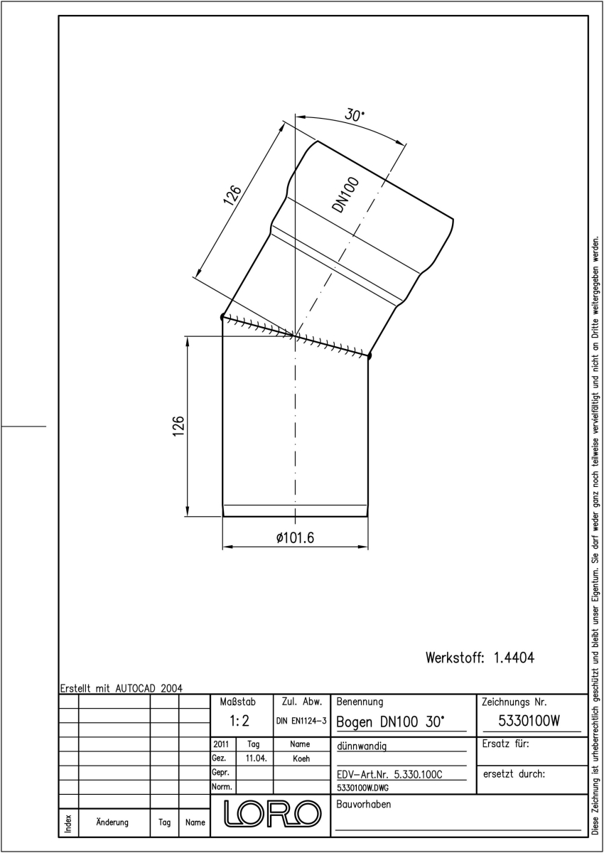 DN 100, 30°, V4A