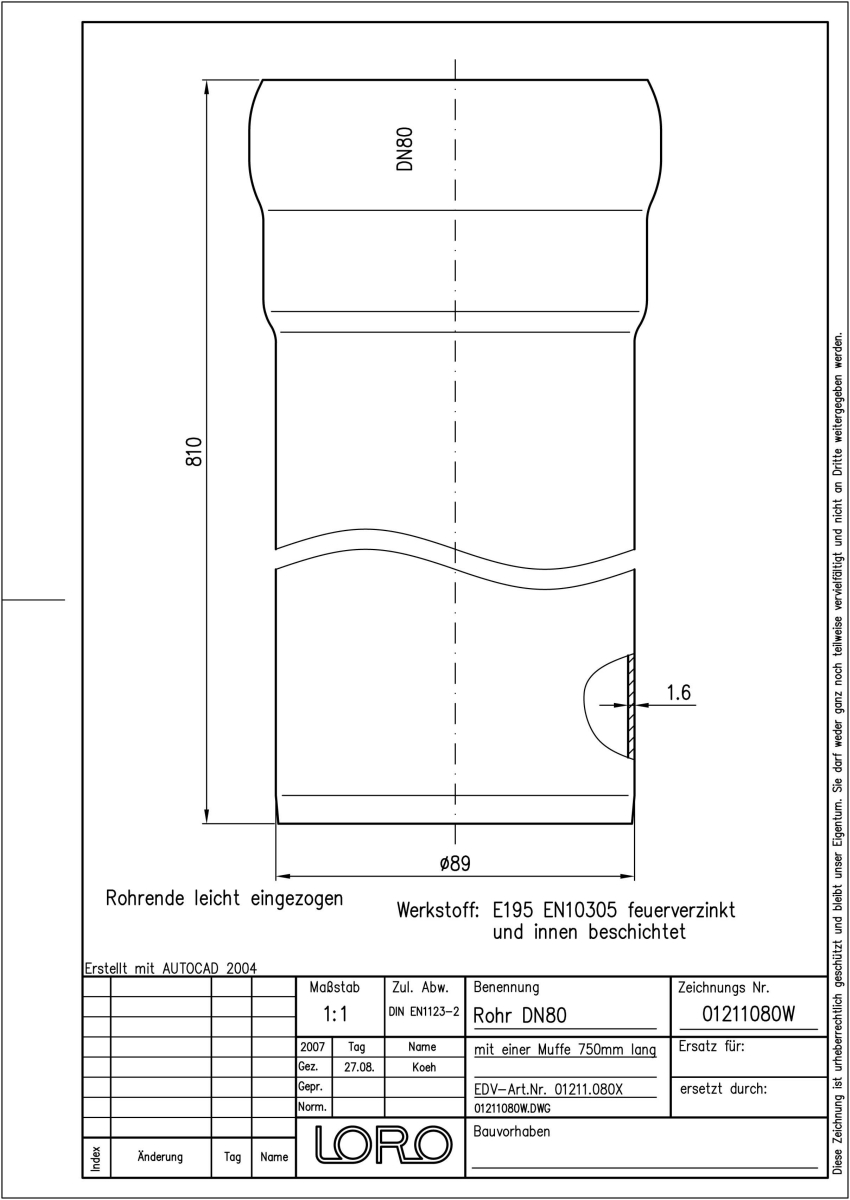 DN 80, 75cm, Steckm., fvz