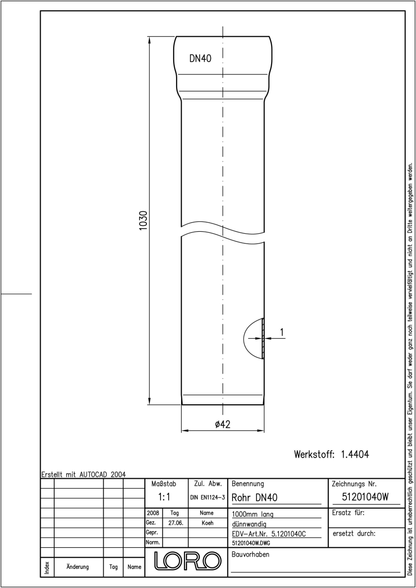 DN 40, 1m, Steckm., V4A