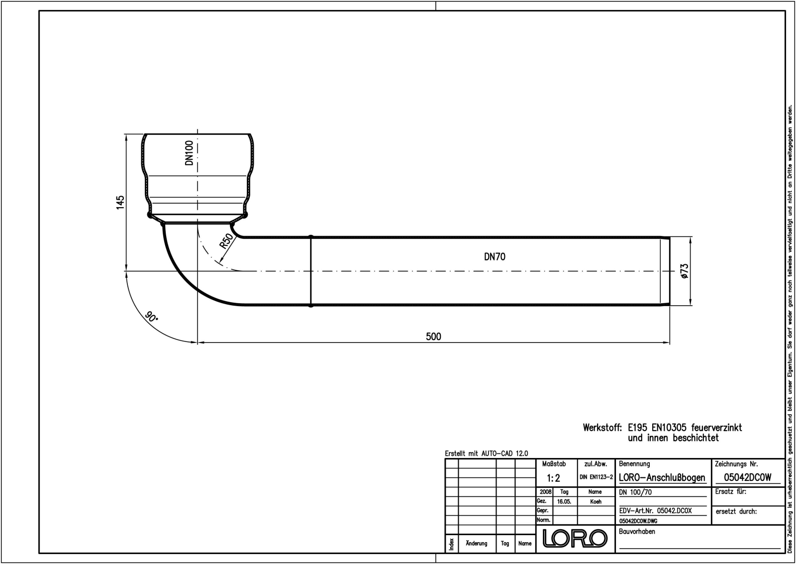 LORO-DRAINJET Anschlussbogen nach DIN EN 1123 mit erhöhtem Qualitätsstandard gemäß RAL-Gütezeichen, mit 2-Kammern-Steckmuffenverbindung, aus Stahl, feuerverzinkt, Baustoffklasse A1, formstabil, bruchfest, rückstausicher, langlebige Innenbeschichtung gemäß DIN EN ISO 2178 auf Basis einer 2K-Epoxid-Kombination, Farbton: Rotbraun, 90 Grad, DN 100/70