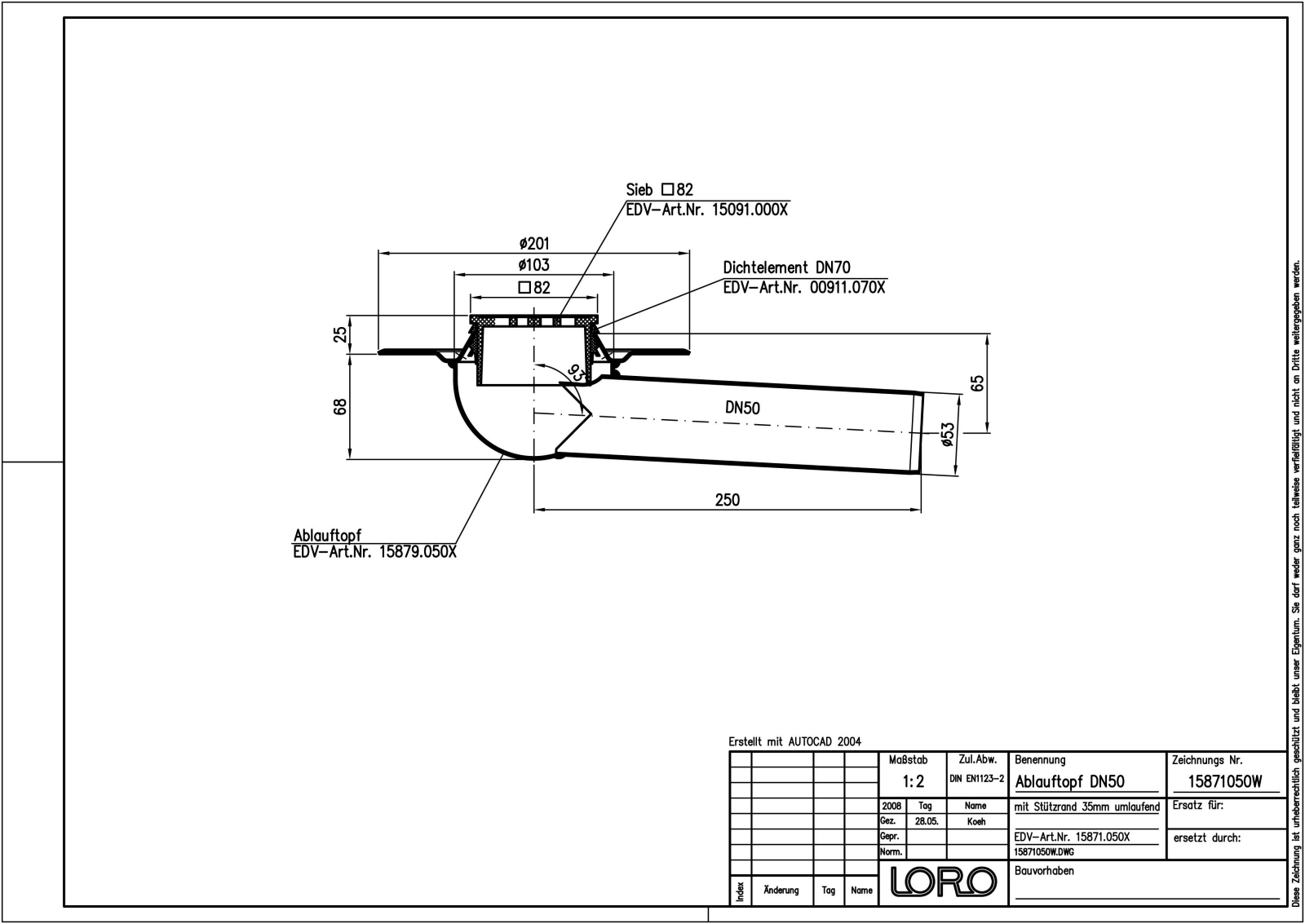 LORO-X Balkonablauf, Serie A mit Stützrand, einteilig ohne Wärmedämmung, Auslauf seitlich 3 Grad, nach DIN EN 1253 mit erhöhtem Qualitätsstandard gemäß RAL-Gütezeichen GZ-694, aus Stahl feuerverzinkt, mit langlebiger Beschichtung gemäß DIN EN ISO 2178 auf Basis einer 2K-Epoxid-Kombination, Farbton: Rotbraun, bestehend aus: bestehend aus Ablauftopf (Stützrandbreite 35 mm umlaufend), Dichtelement, Kunststoffsieb 82 x 82 mm (für Aufbauhöhe ca. 30 +/- 5 mm), DN 50