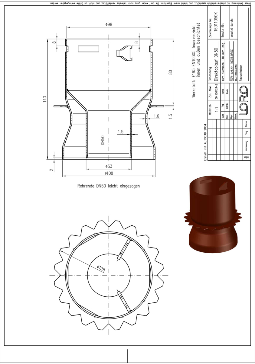 DN 50, f.Platten 140mm, fvz