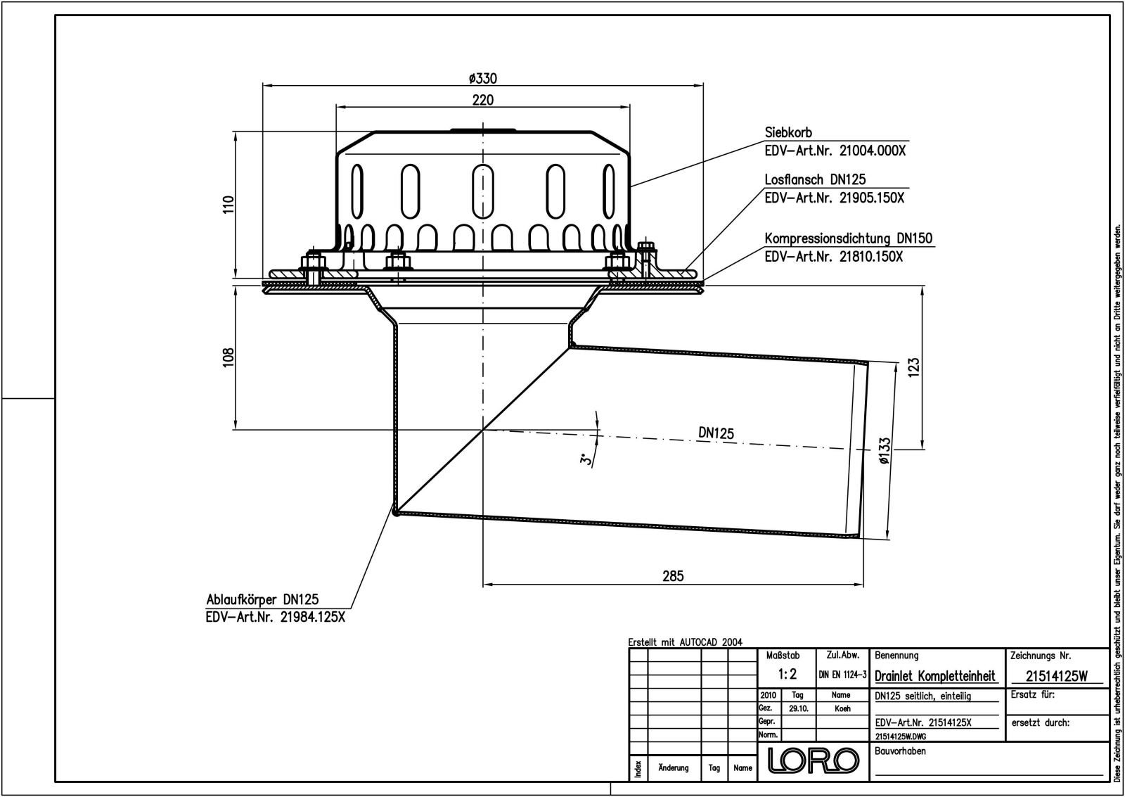LORO-DL 84 Ablauf seitl.