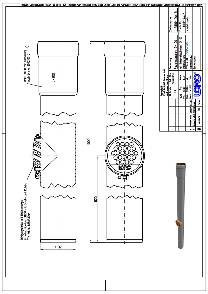 LORO-X Regenstandrohr, aus Stahl, feuerverzinkt, rund, mit Reinigungsöffnung und Reinigungsdeckel mit Hochleistungs-Sicherheitsüberlauf, mit erhöhtem Qualitätsstandard gemäß RAL-Gütezeichen GZ-694, langlebige Innenbeschichtung gemäß DIN EN ISO 2178 auf Basis einer 2K-Epoxid-Kombination, Farbton: Rotbraun, 1500 mm DN 100