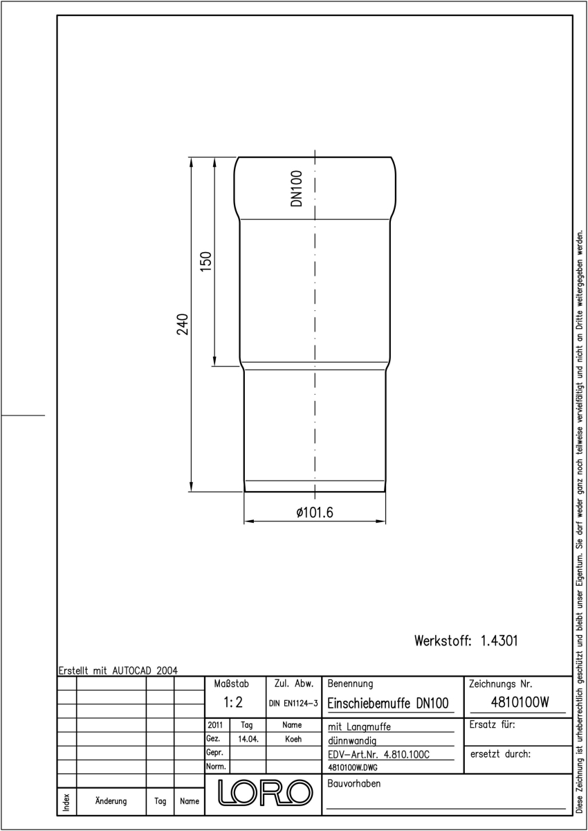 DN 100, Steckm.lg, V2A