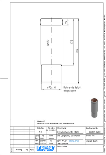 **LORO-X Einschiebmuffe T3 = 175 mm, DN 70 **