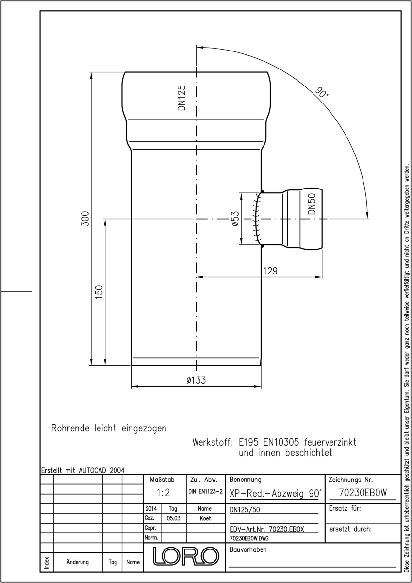 LORO-XP Reduzierter-ABZWEIG 90 GRAD DN 125/50