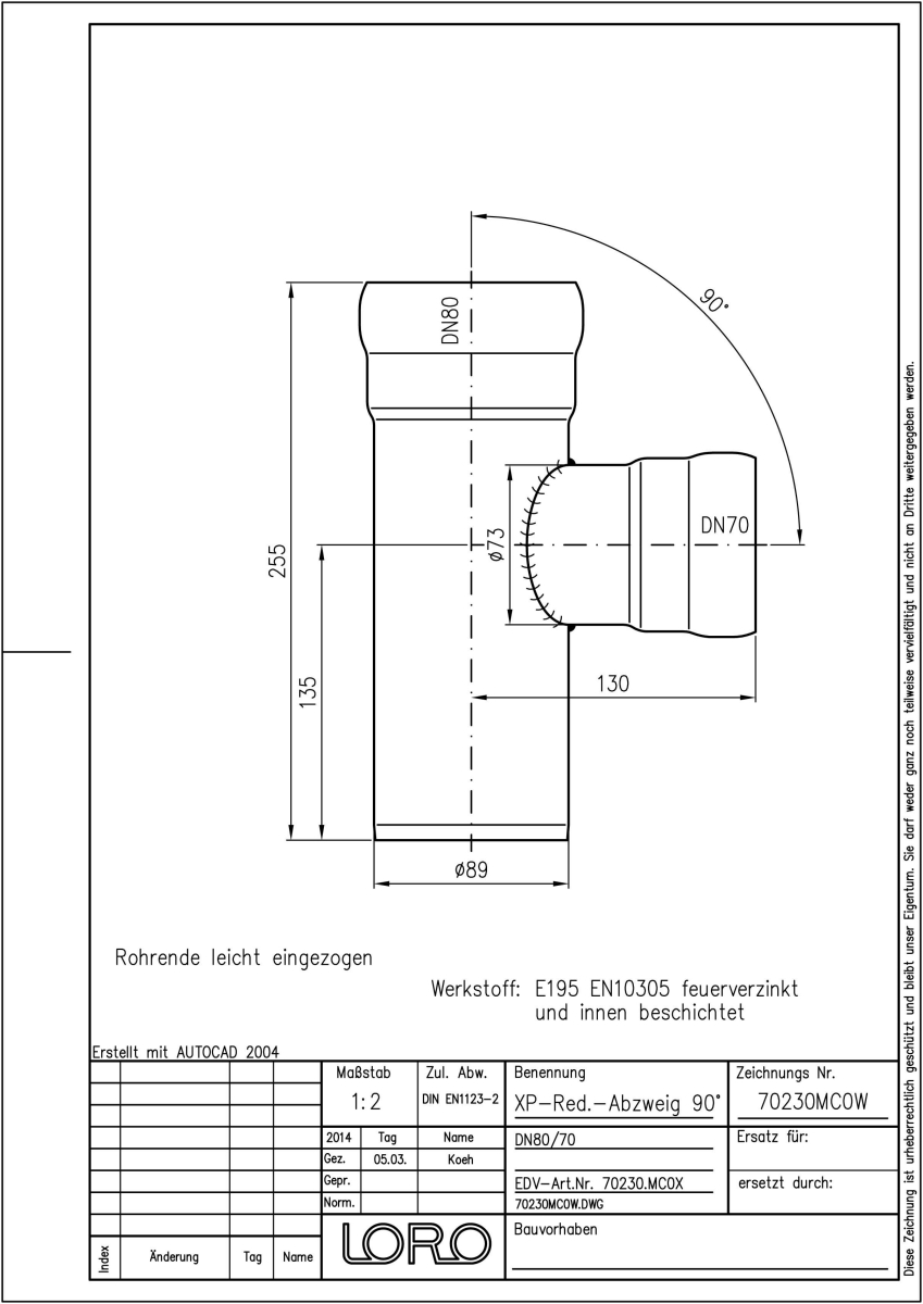 LORO-XP Reduzierter-ABZWEIG 90 GRAD DN 80/70