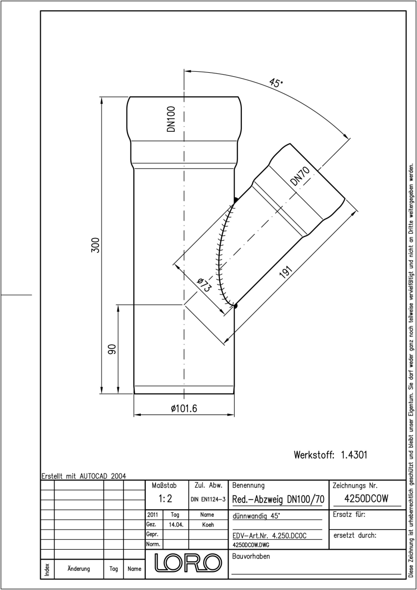 DN 100/70, 45°, V2A