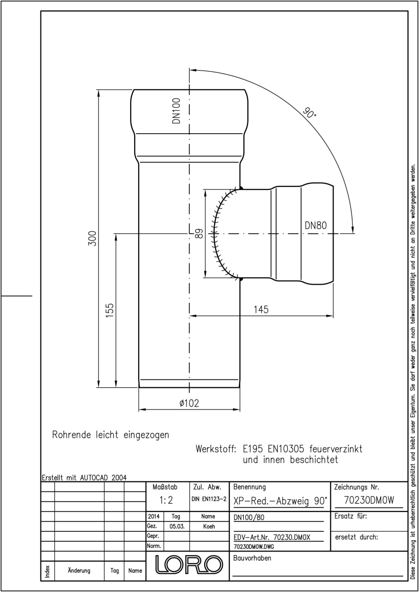 LORO-XP Reduzierter-ABZWEIG 90 GRAD DN 100/80