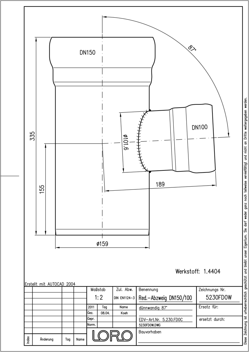 DN 150/100, 87°, V4A