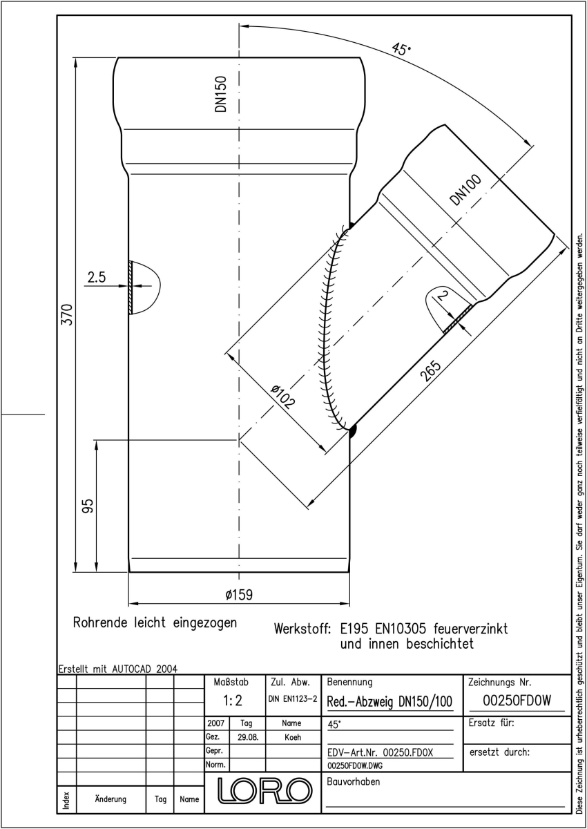 DN 150/70, 45°, fvz
