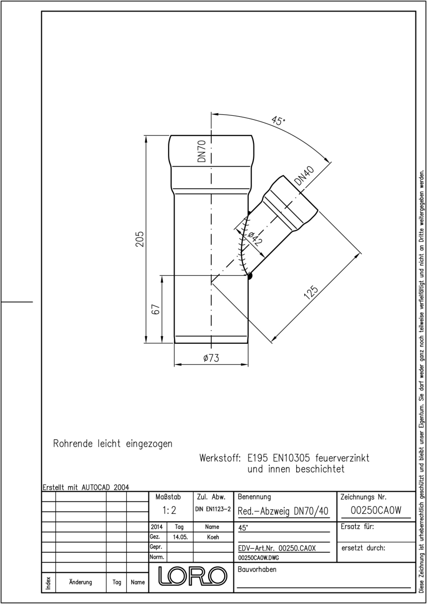 DN 70/40, 45°, fvz