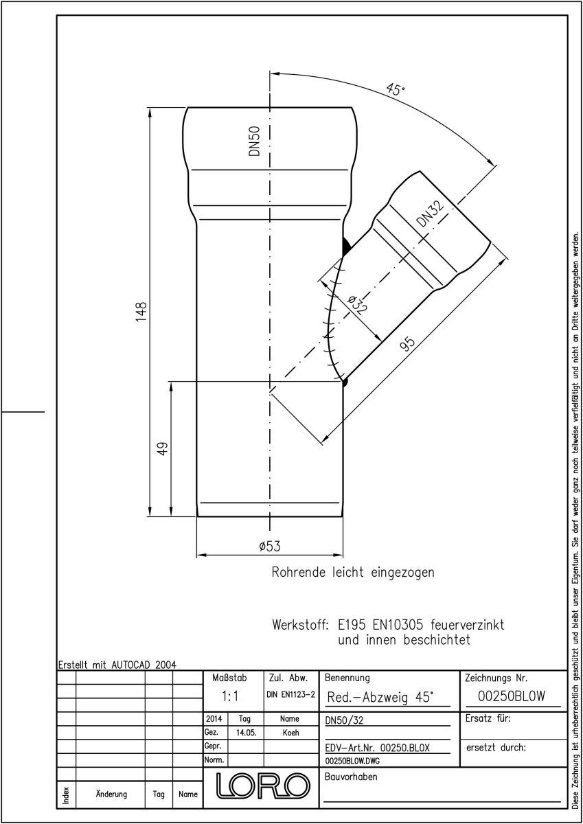 DN 50/32, 45°, fvz