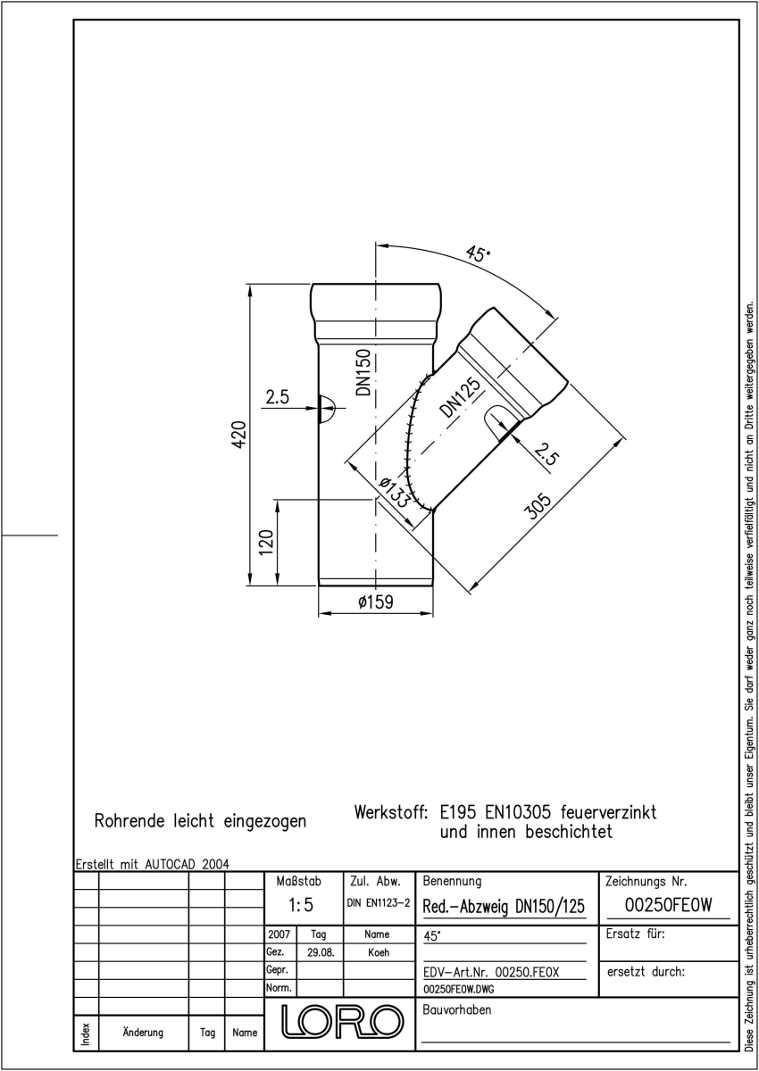 DN 150/125, 45°, fvz
