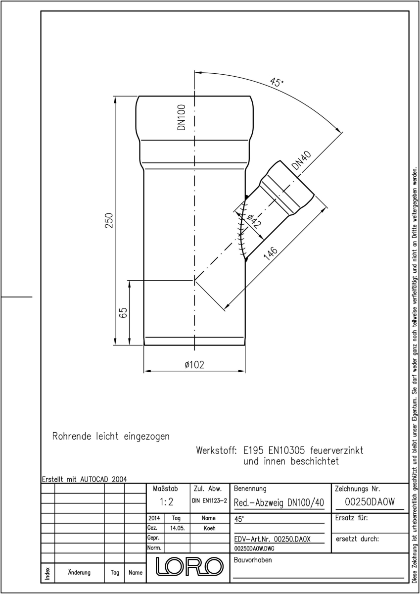 DN 100/40, 45°, fvz