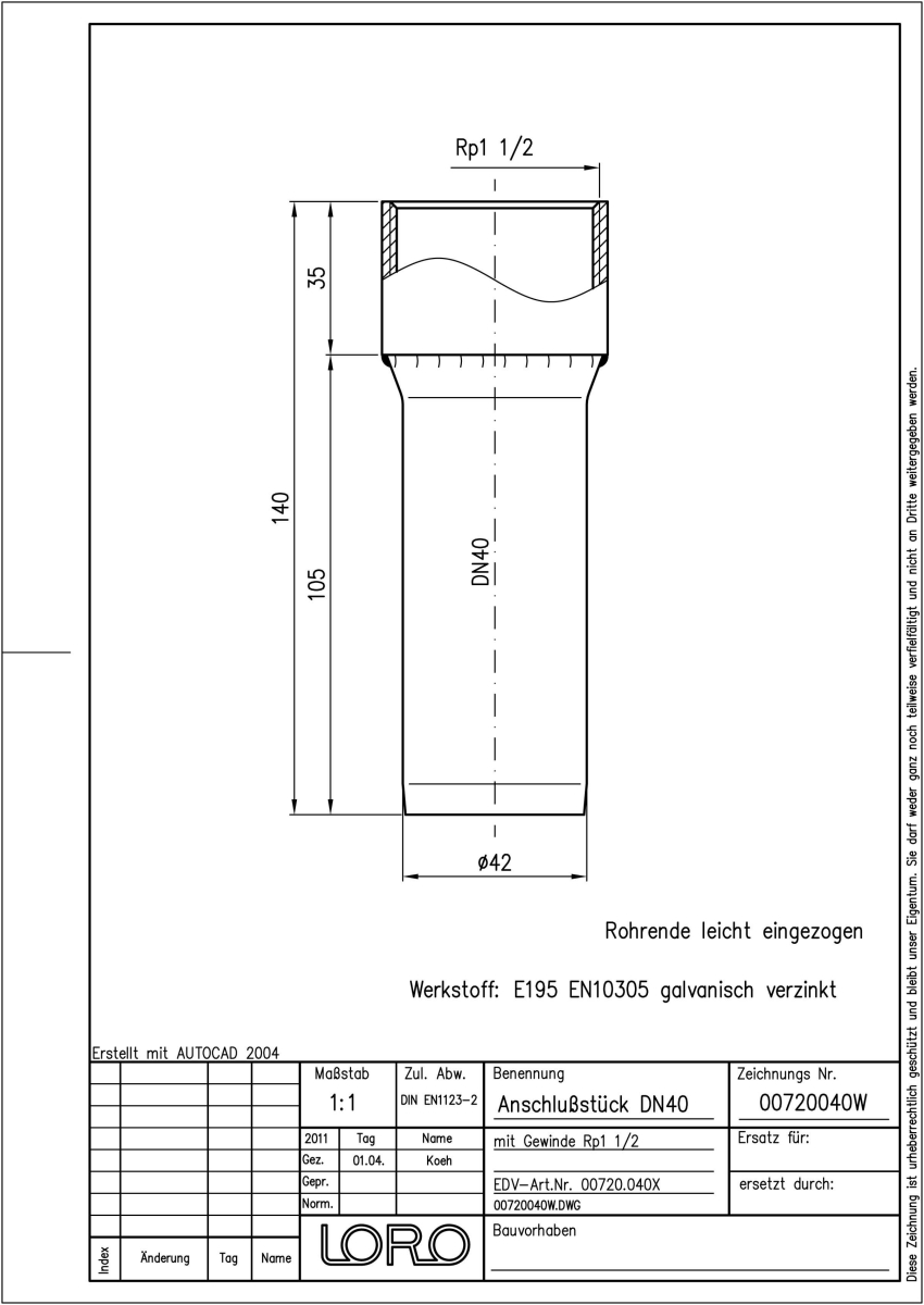 LORO-X Anschlussstück mit Innengewinde 1 1/2 Zoll, aus Stahl, feuerverzinkt, DN 40
