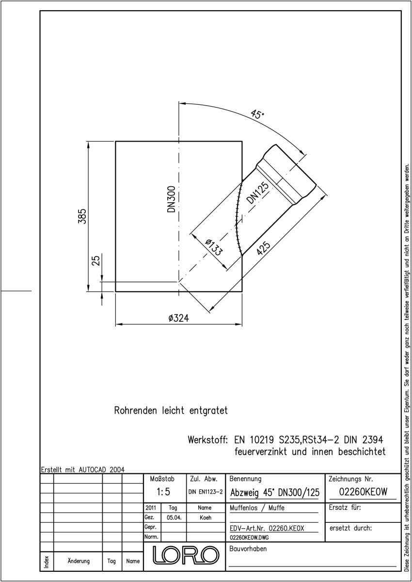 DN 300/125, 45°, fvz