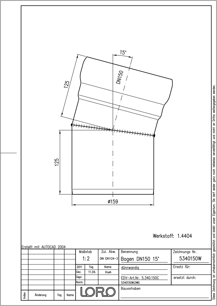 DN 150, 15°, V4A