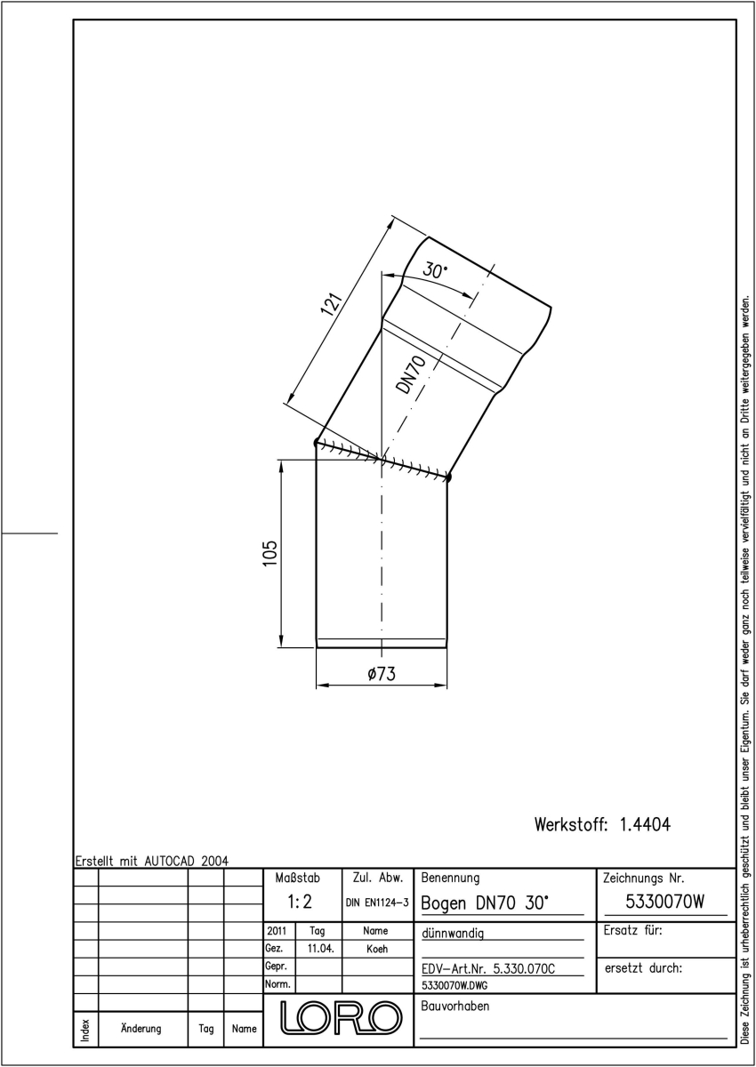 DN 70, 30°, V4A