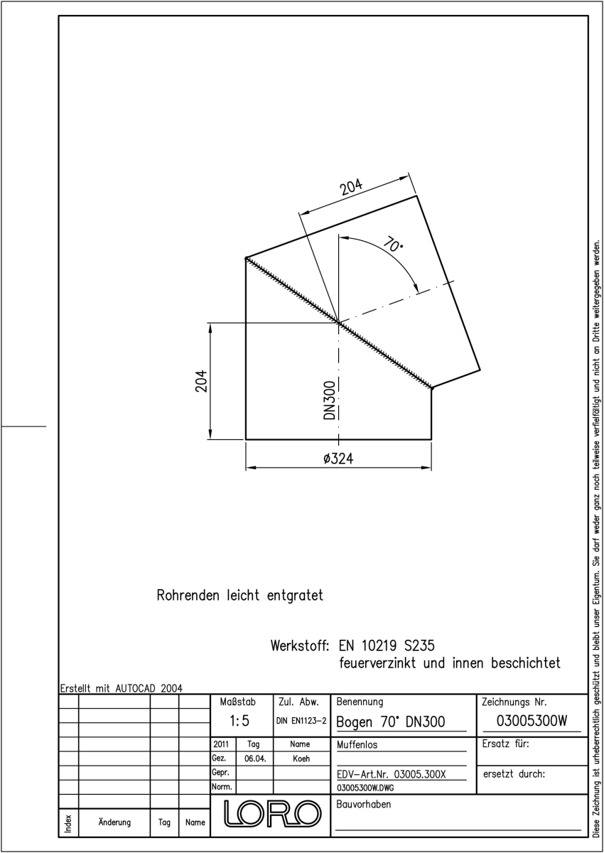 DN 300, 70°, fvz