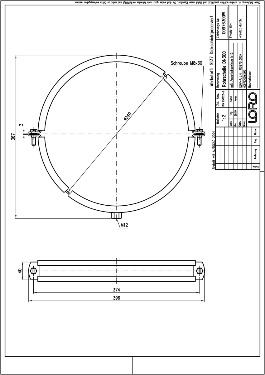 LORO-X Rohrschelle, aus Stahl, mit Anschlussgewinde M 12, mit Schalldämmung, DN 300