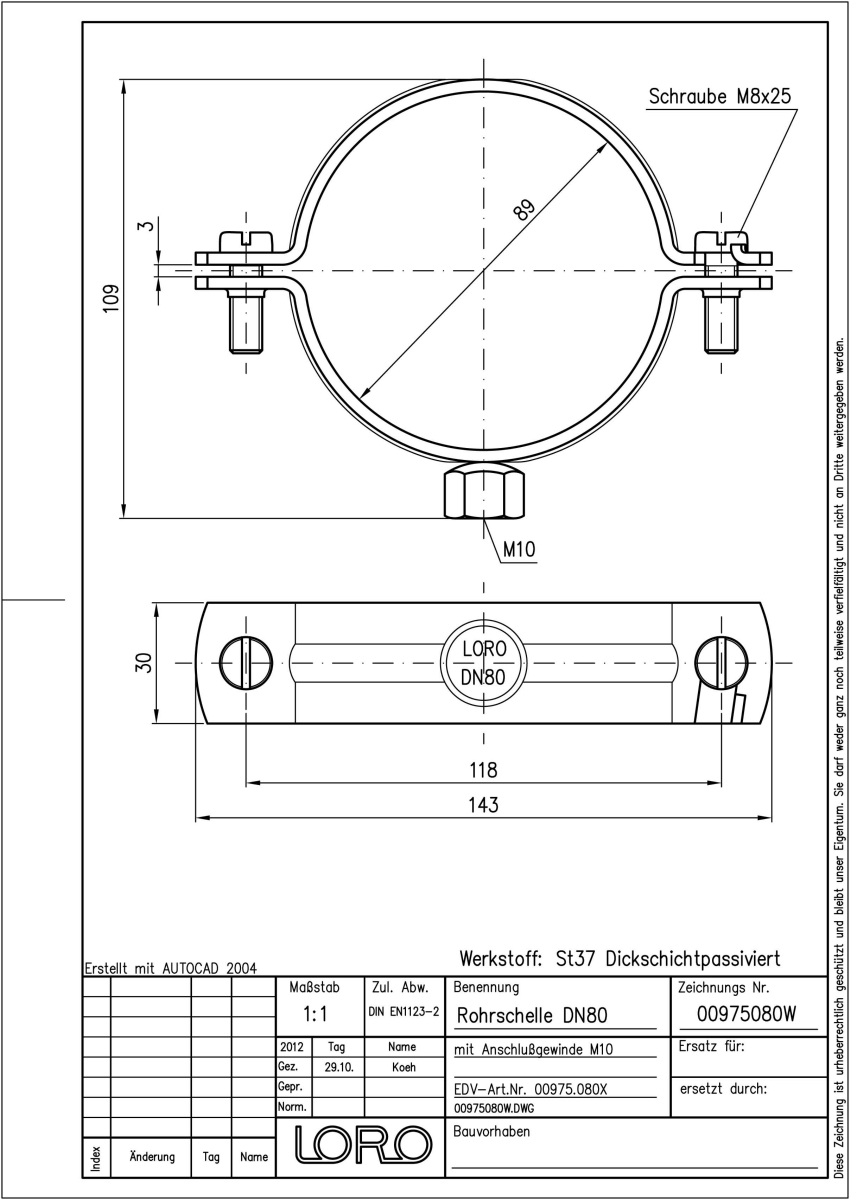 DN 80, Gew. M10, fvz