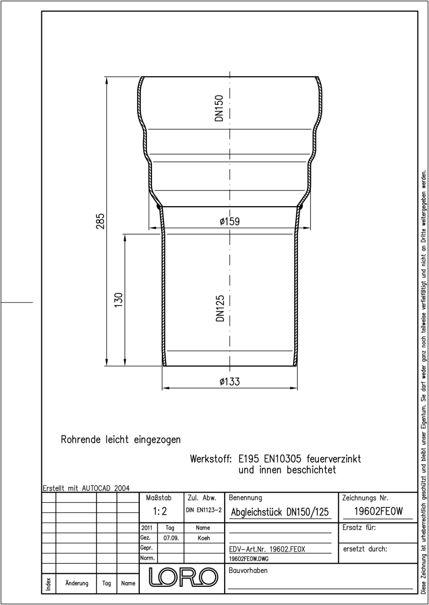 LORO-DRAINJET Abgleichstück für Druckströmung, aus Stahl, feuerverzinkt , langlebige Innenbeschichtung gemäß DIN EN ISO 2178 auf Basis einer 2K-Epoxid-Kombination, Farbton: Rotbraun, 150/125