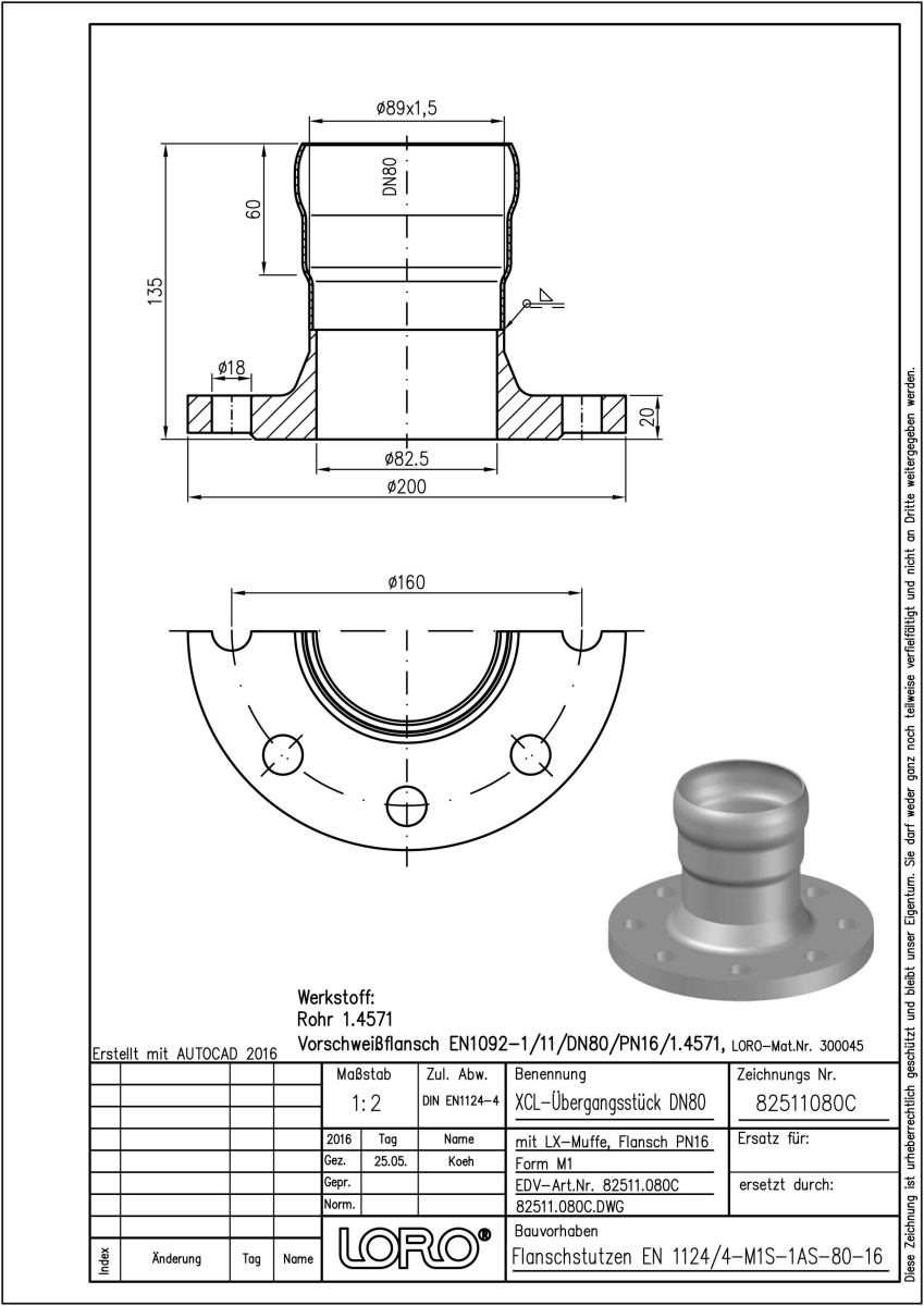 LORO-XC Übergangsstück mit Flansch und Steckmuffenverbindung