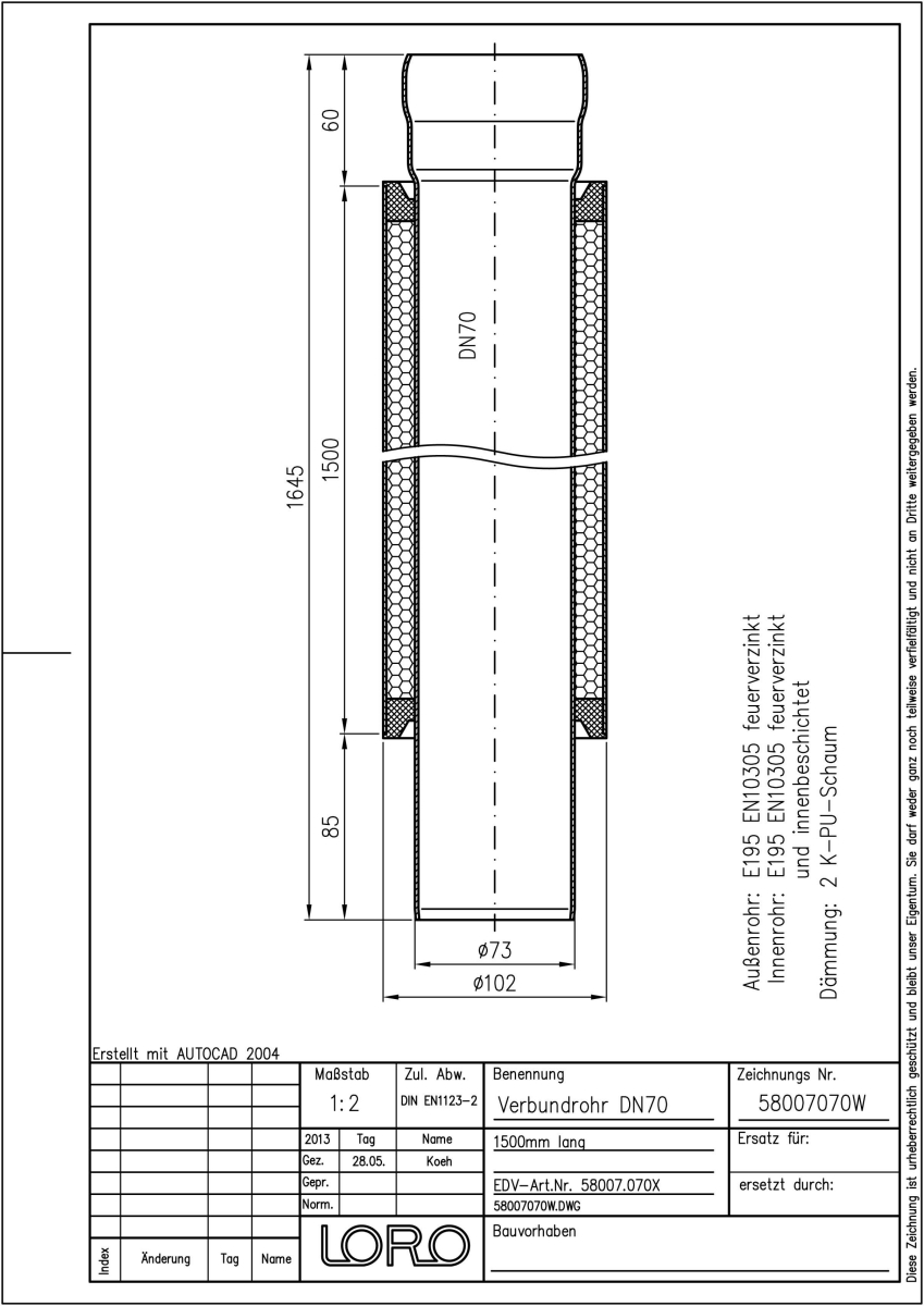 DN 70, 1,5m, Standard