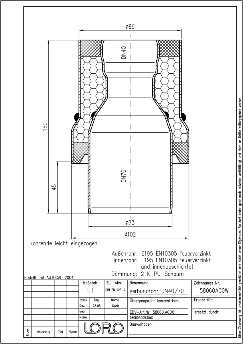 LORO-X Verbundrohr Übergangsrohr (konzentr. Reduzierter-Stück) bestehend aus Innenrohr (LORO-X Rohr