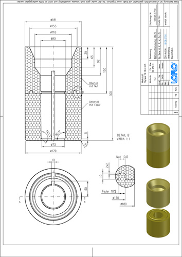 LORO-Wärmedämmung aus Styropor B1, senkrecht, für Serien V, E, F, O, DJ und DL, DN 70