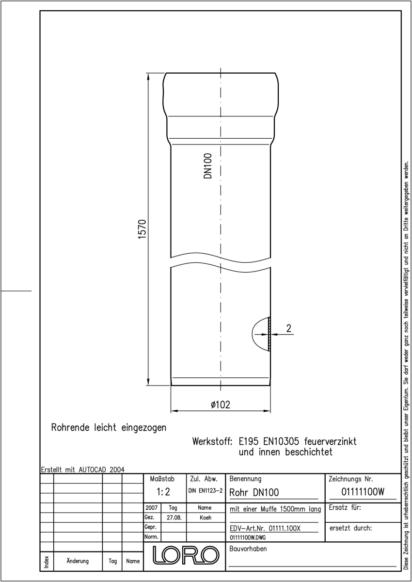DN 100, 1,5m, Steckm., fvz
