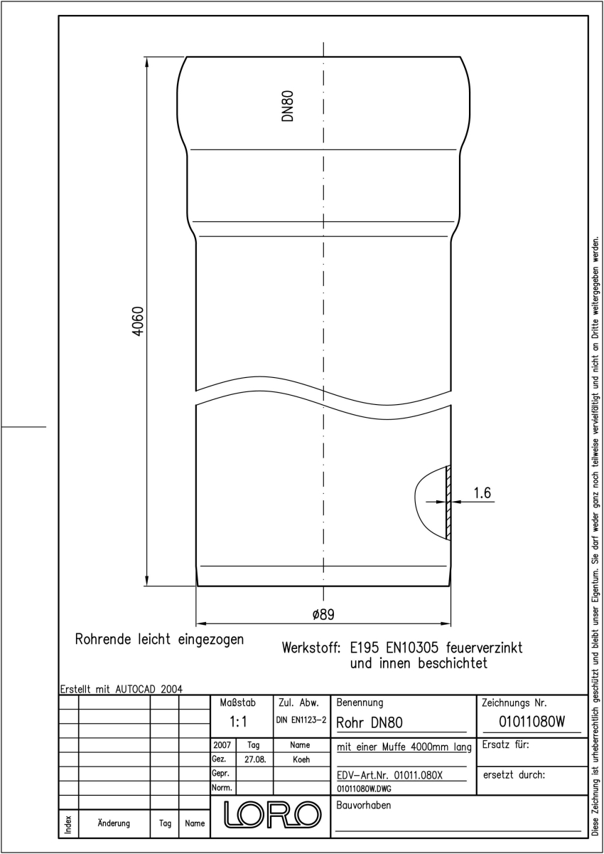DN 80, 4m, Steckm., fvz
