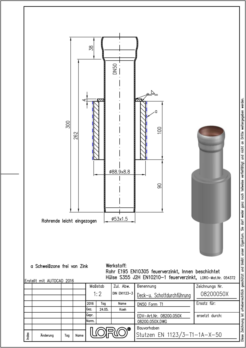 Form T1 aus Stahl feuerverzinkt Innenrohr zusätzlich beschichtet DN 50