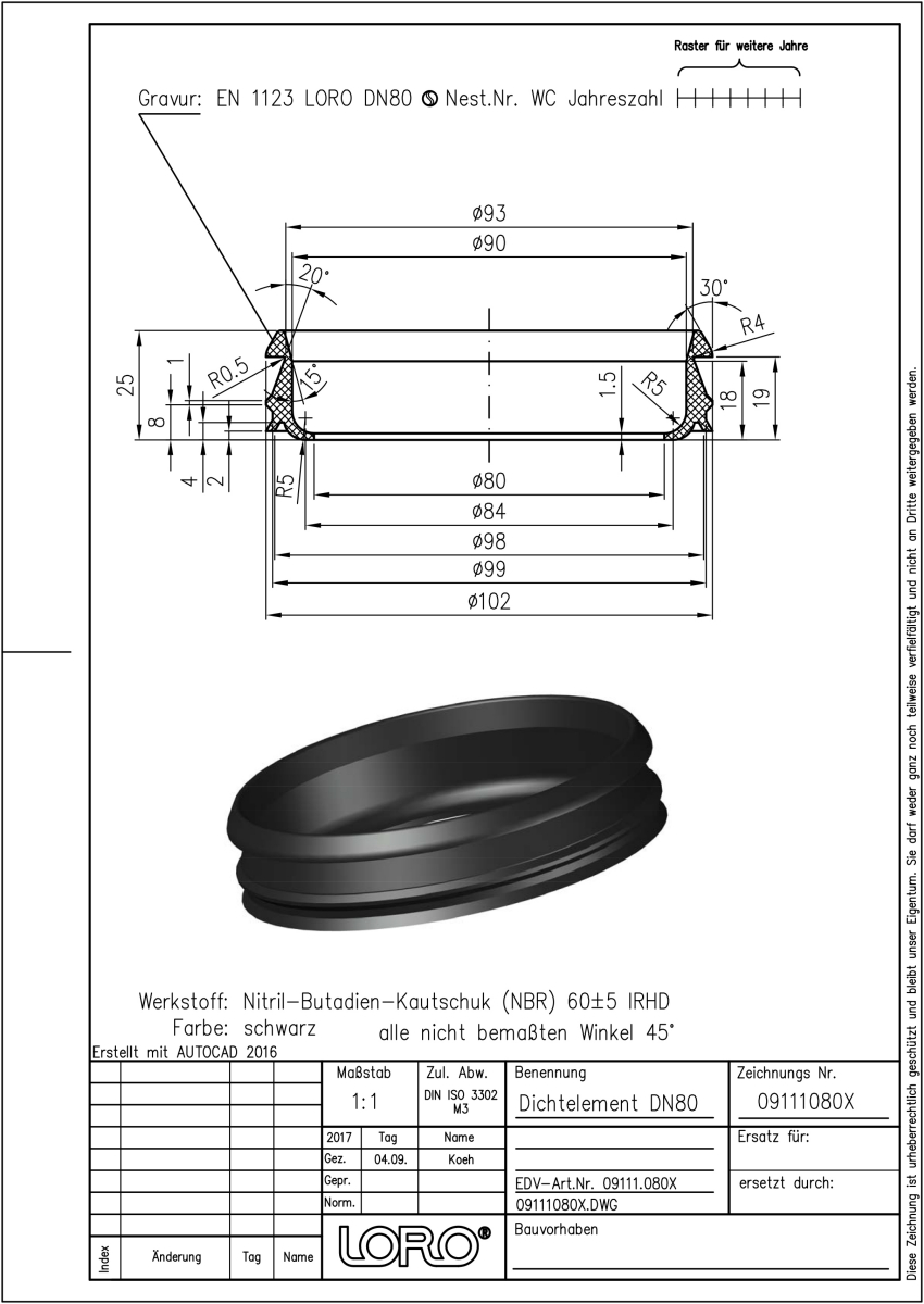 DN 80, f. LORO-X Rohr, NBR