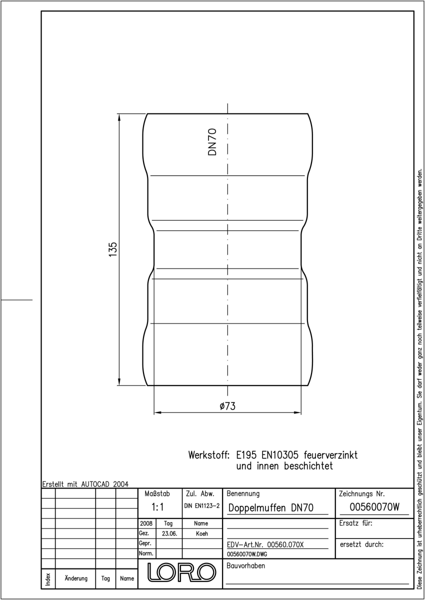 LORO-X Doppelmuffe, aus Stahl, feuerverzinkt, nach DIN EN 1123 mit erhöhtem Qualitätsstandard gemäß RAL-Gütezeichen GZ-694, mit 2-Kammern-Steckmuffenverbindung, Baustoffklasse A1, formstabil, bruchfest, rückstausicher, langlebige Innenbeschichtung gemäß DIN EN ISO 2178 auf Basis einer 2K-Epoxid-Kombination, Farbton: Rotbraun, DN 70