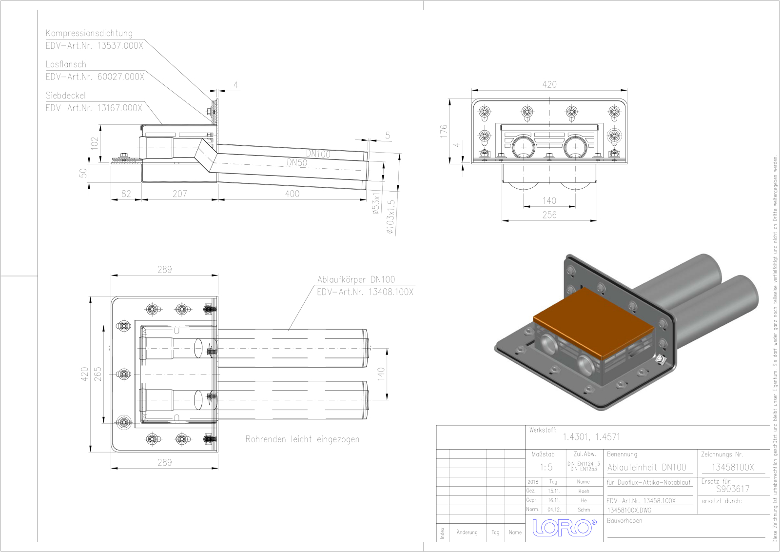 DN 100/50, Dop.-R-Dachterr., VA