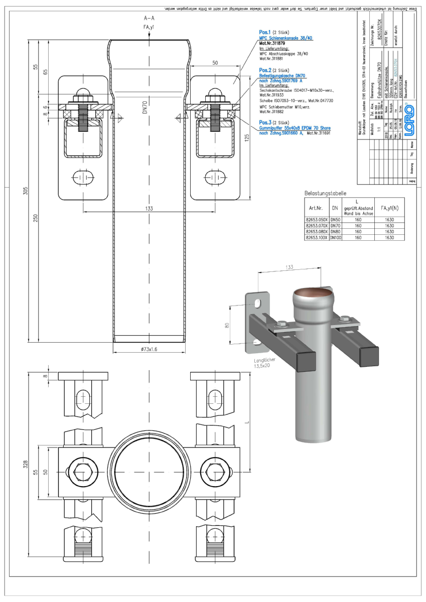 LORO-X-Fallrohrstütze mit Befestigungskonsole 320mm und Schallentkopplung, nach DIN EN 1123 mit erhöhtem Qualitätsstandard gemäß RAL-Gütezeichen GZ-694, mit 2-Kammern-Steckmuffenverbindung, aus Stahl, feuerverzinkt, Baustoffklasse A1, formstabil, bruchfest, rückstausicher, langlebige Innenbeschichtung gemäß DIN EN ISO 2178 auf Basis einer 2K-Epoxid-Kombination, Farbton: Rotbraun, mit Stützrand, DN 70
