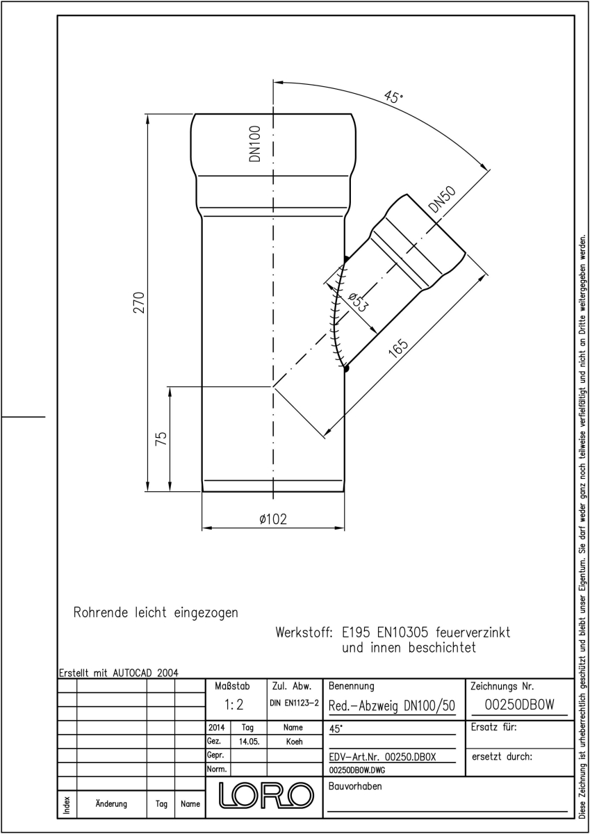 DN 100/50, 45°, fvz