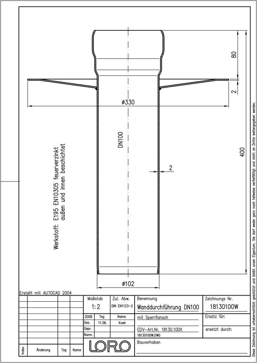 DN 100, 40cm, Sperrfl./medienf., fvz