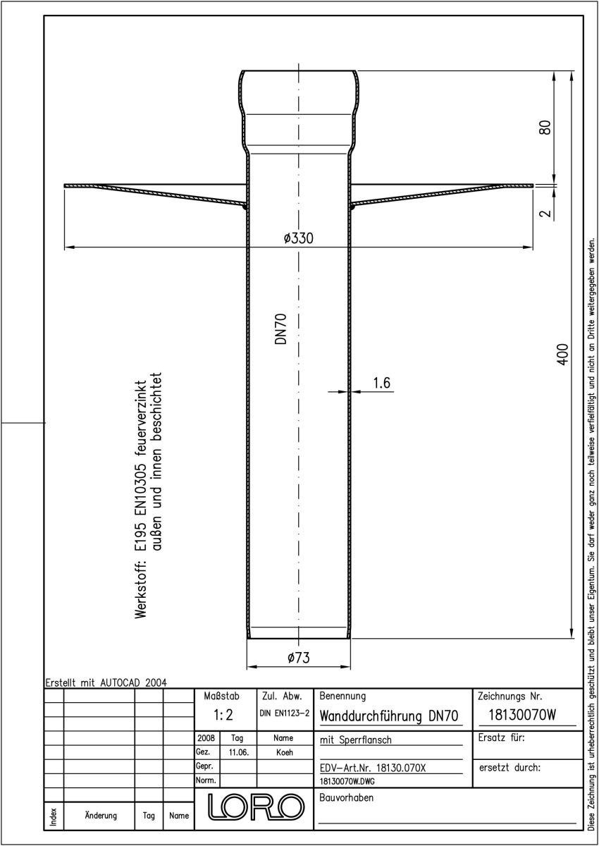 DN 70, 40cm, Sperrfl./medienf., fvz