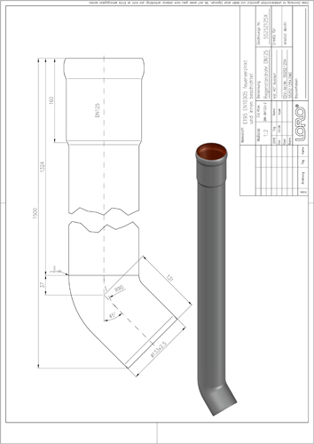 DN 125, 1,5m, Bogen 45°, fvz