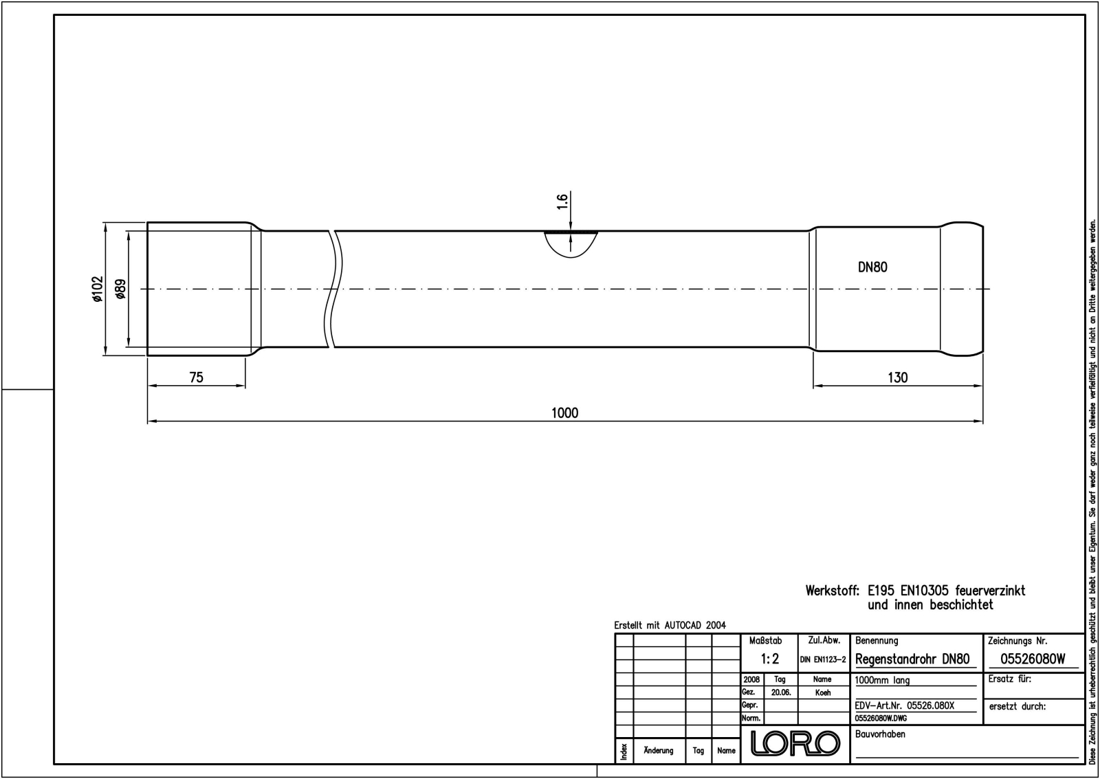 DN 80, 1m, fvz