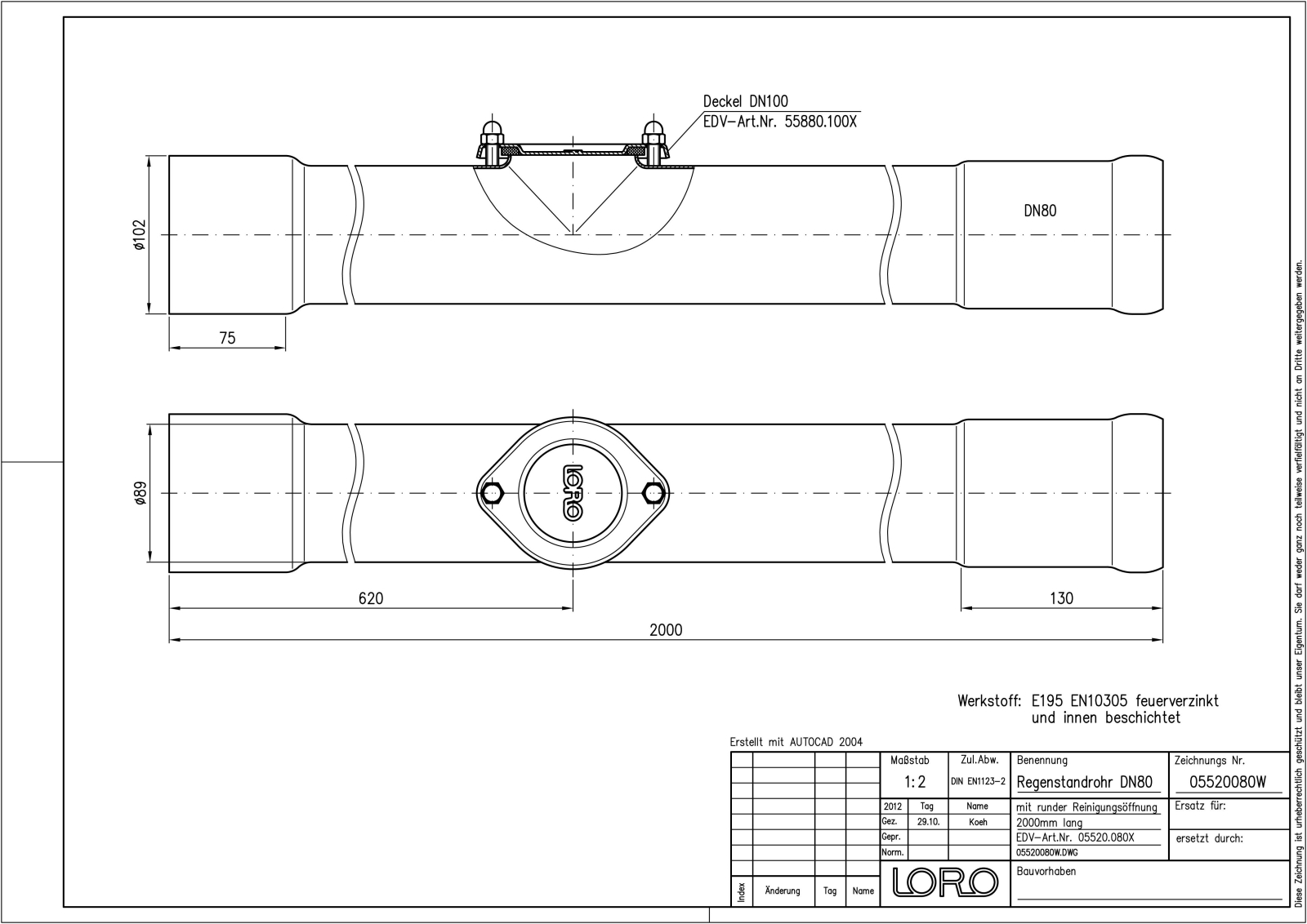 DN 80, 2m, Öffn., fvz