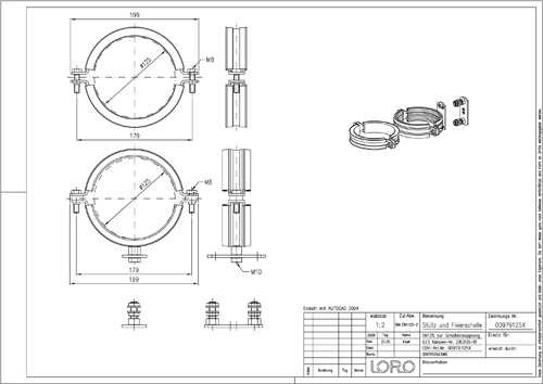 LORO-X Stütz- und Fixierschelle, aus Stahl, zur Schallentkopplung, mit Schalldämmung, DN 125