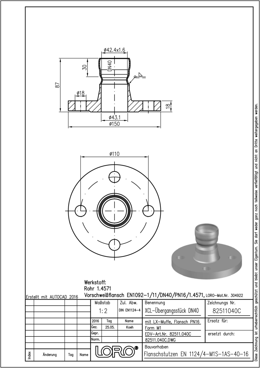 LORO-XC Übergangsstück mit Flansch und Steckmuffenverbindung